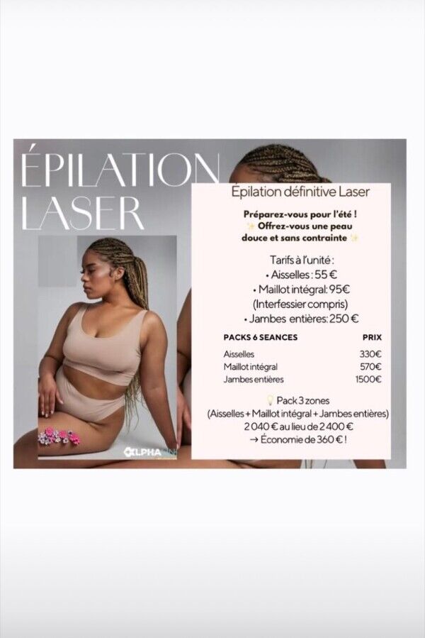 Epilation Définitive Laser Pack  Aisselles/maillot intégral/Jambes entières