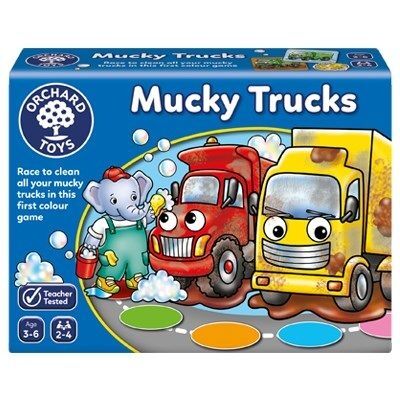 Race to clean all your mucky trucks in this first colour game A fun and simple colour game for 3-6 year olds The winner is the first player to turn over all their trucks and make them clean! Watch out for the mud splat that will make your truck dirty again! Perfect birthday gift